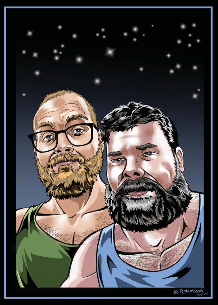 A significant milestone in his career was meeting Dale Lazarov, a published comic book author who specialized in LGBTQ+ storylines. Together, they created several graphic novels, including “Pardners,” an erotic love story set in the country music scene, “Super Creeps,” a tale of supervillains turned heroes fighting for gay rights, and “The Milky Way Brigade,” an intergalactic adventure inspired by the Legion of Super-Heroes.