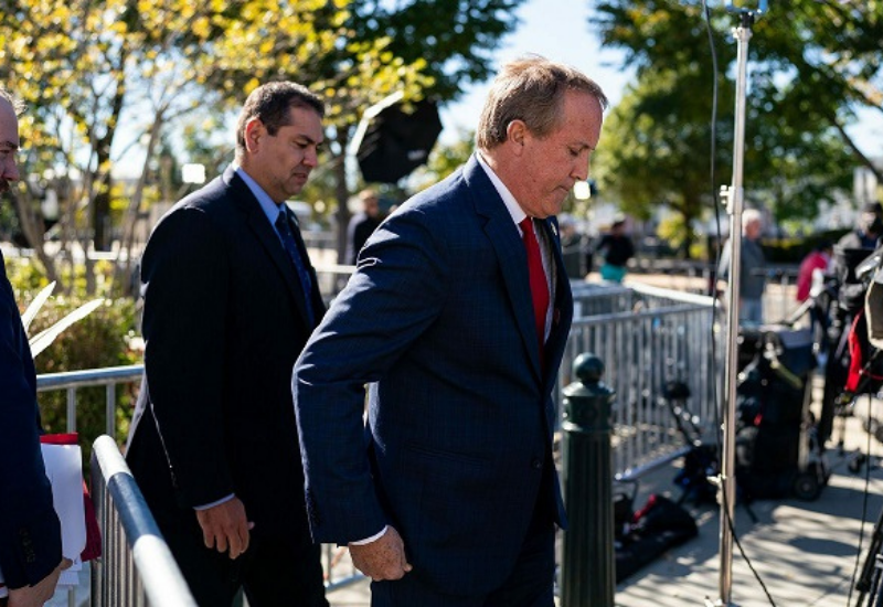 Texas Attorney General Ken Paxton is pictured outside the U.S. Supreme Court in November of 2021. (KENT NISHIMURA/LOS ANGELES TIMES/GETTY IMAGES)