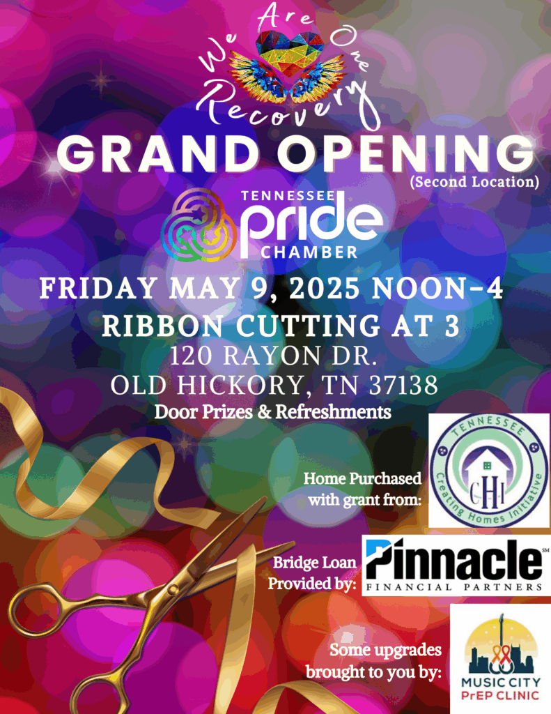 NASHVILLE, TN – We Are One Recovery, Nashville’s only LGBTQIA2S+ recovery residence whose mission is to assist LGBTQIA2S+ individuals and allies with having a safe place to live free of alcohol, drugs, or persecution, is celebrating the opening of their second recovery house with a rainbow ribbon cutting on May 9, from noon to 4pm at 120 Rayon Dr., Old Hickory.